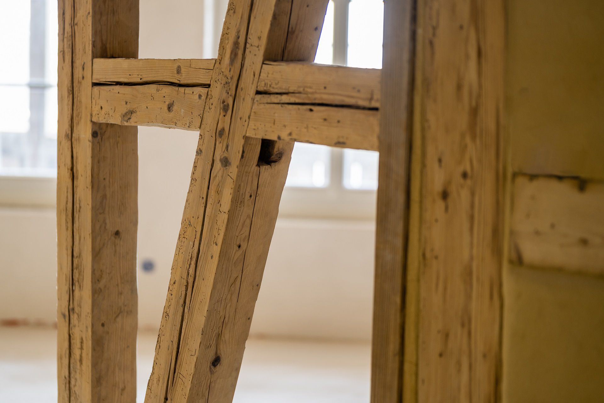 Die bestehenden Wände und Decken wurden praktisch alle erhalten. Neue Wände als Raum- und Zimmertrennwände wurden in neuer Leichtbauweise erstellt. Mit Ausnahme der neuen Bodenplatte, dem Treppenhaus und einzelner Wände zur modernen Nachahmung von alten Brand- und Aussenmauern wurde kein Beton verwendet. Die Geschossdecken wurden alle in Holz erhalten oder mussten teilweise aufgrund ihres Zustandes ersetzt werden.