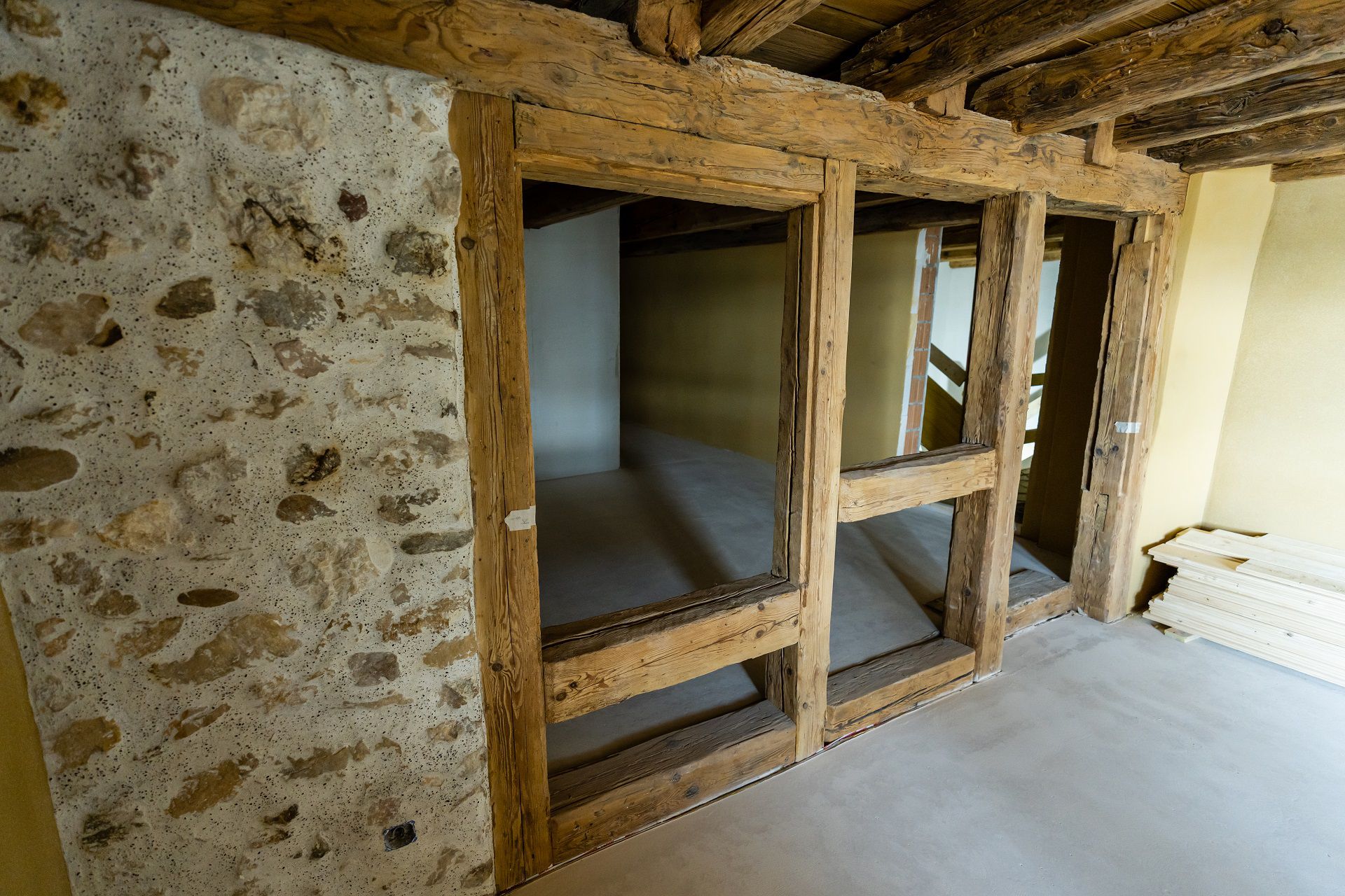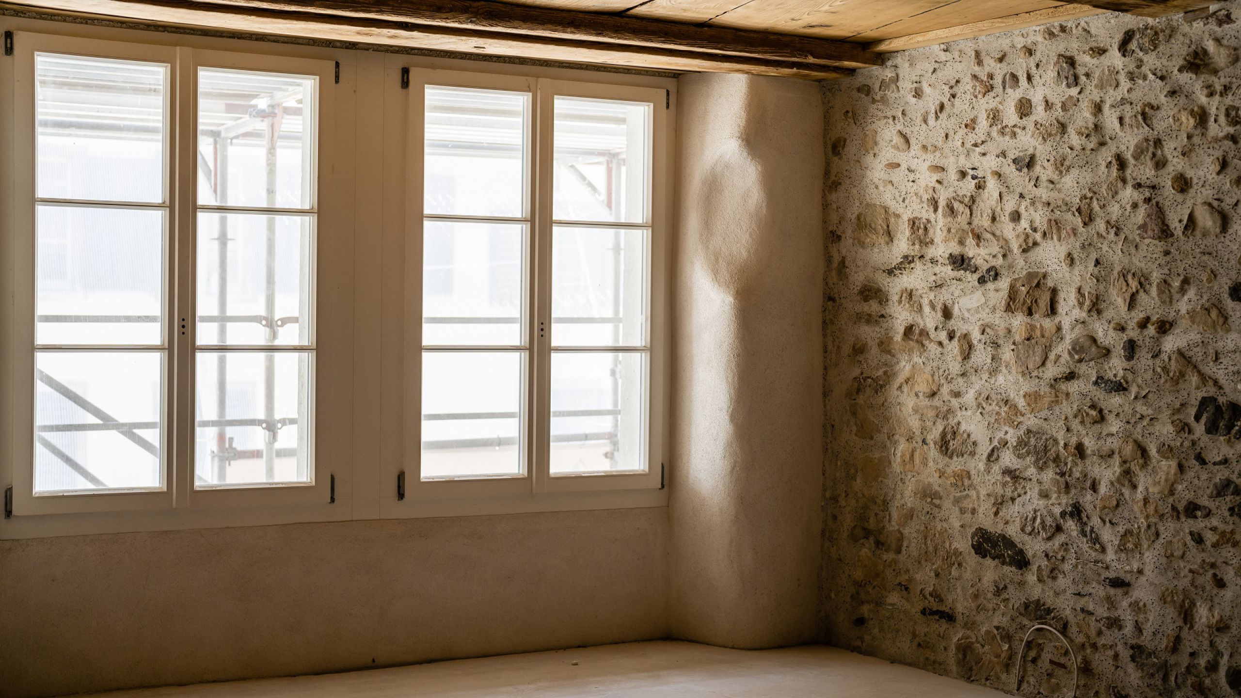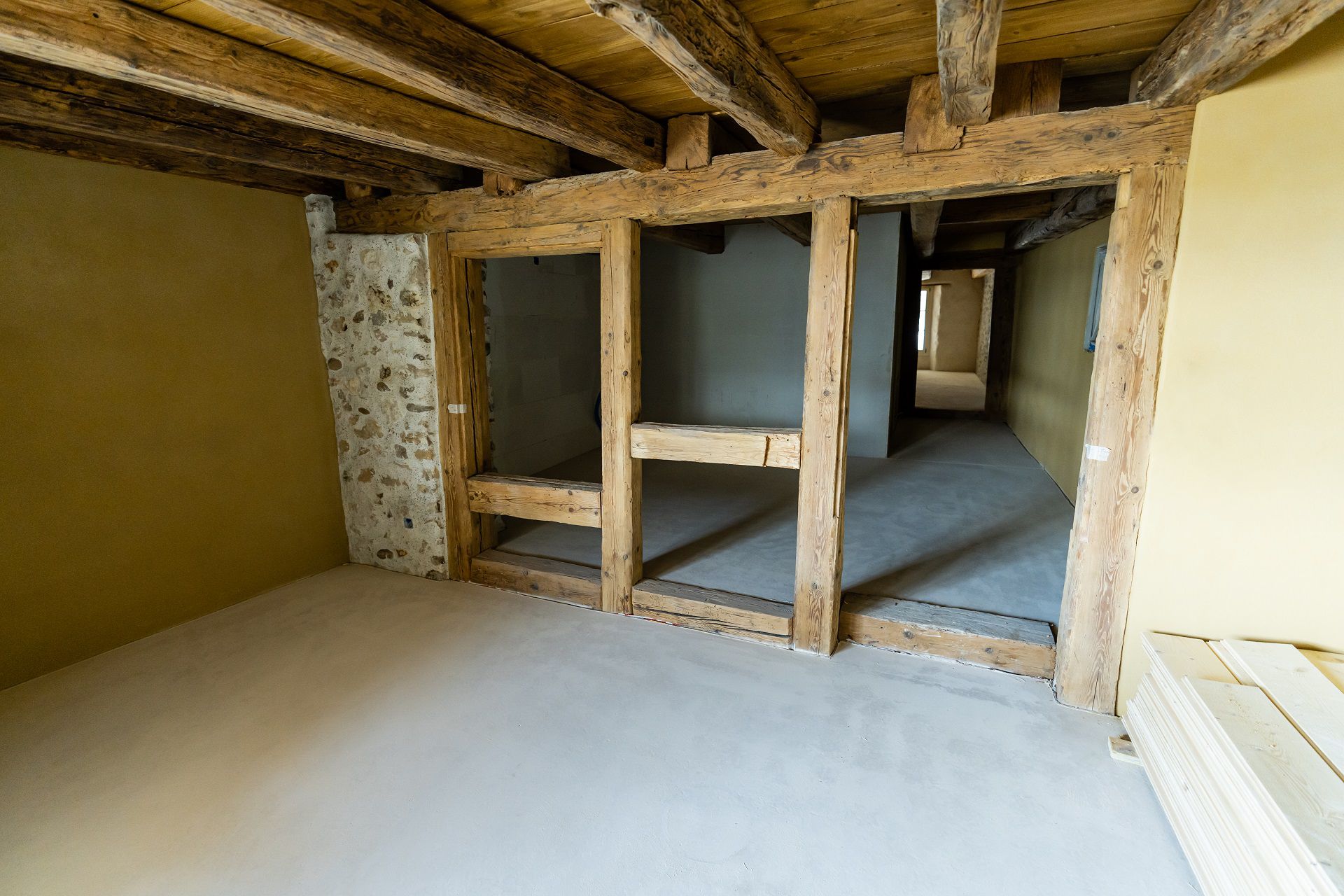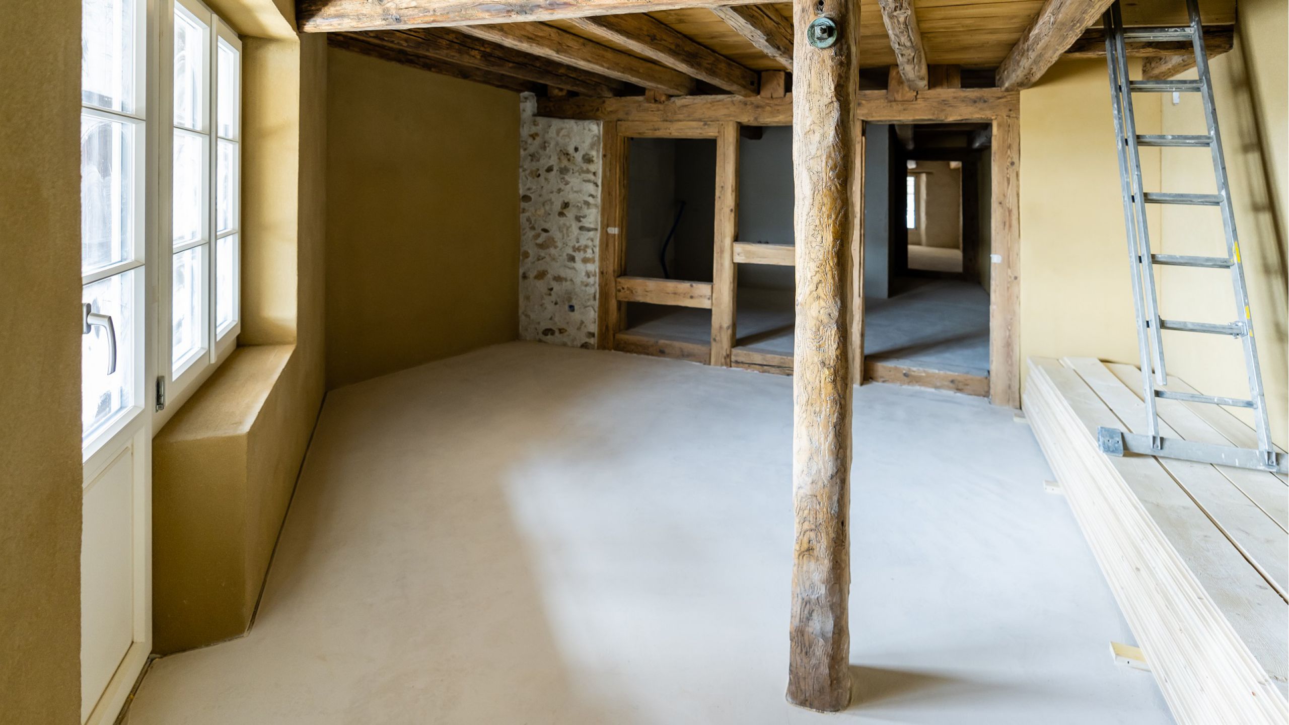 Bei der Verwendung der Materialien zum Innenausbau wurde bewusst auf Nachhaltigkeit und Ökologie geschaut. Bei den Wandputzen im 1. und 2. Obergeschoss wurden Lehmputze verwendet. Im Erdgeschoss fanden Kalkputze ihren Platz. Bruchsteinmauern sind nach alten Mörtelrezepturen ausgefugt worden. Die Aussenwände wurden im Innenbereich mit Isolationsmörtel und Bio-Einbettmörtel verputzt. Die mehrheitlichen Innenputze stammen von der Firma Haga Naturbaustoffe AG. Für die Anstriche werden ebenfalls nachthaltige Kalk- und mehrheitlich Lehmfarben verwendet.