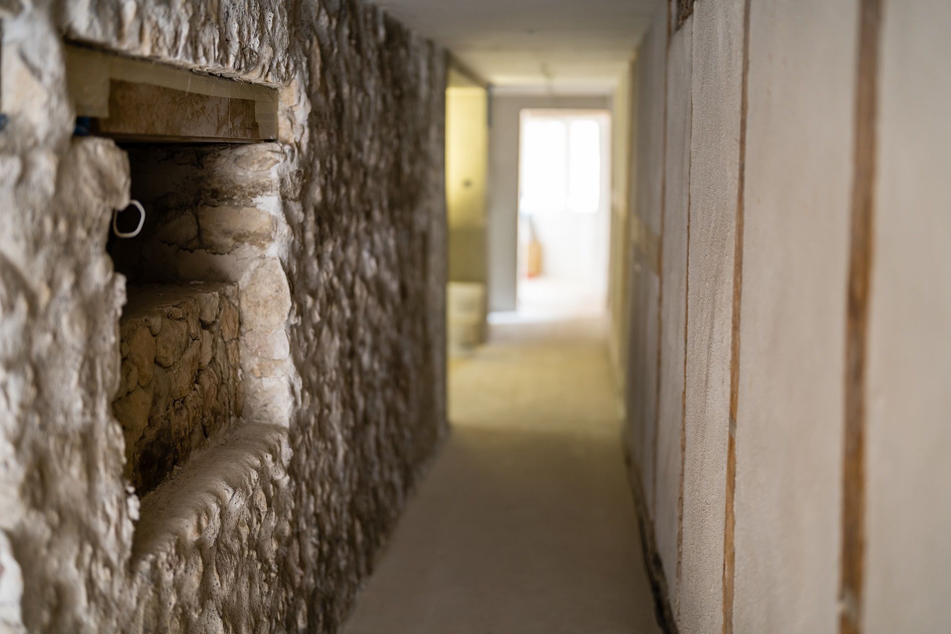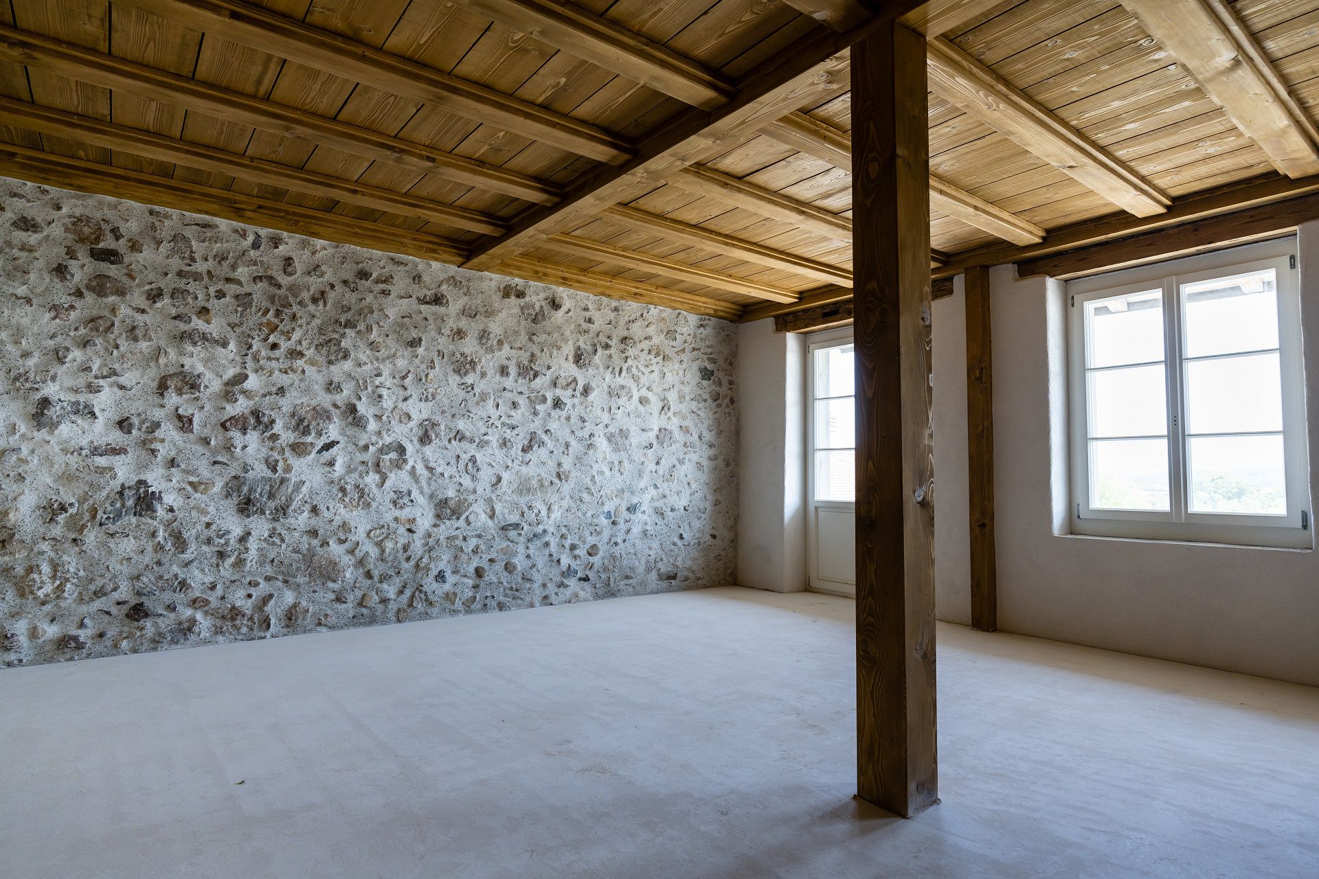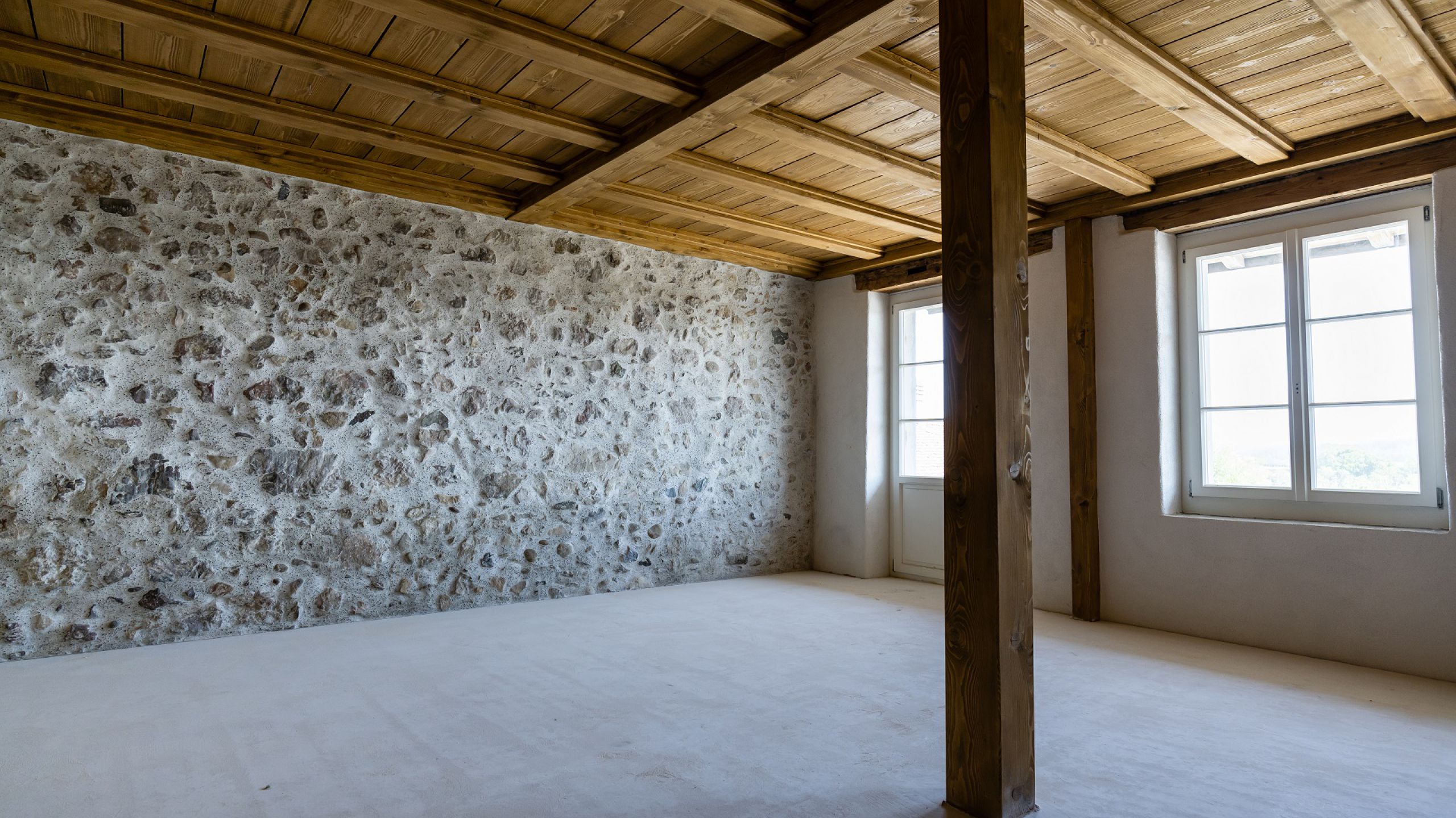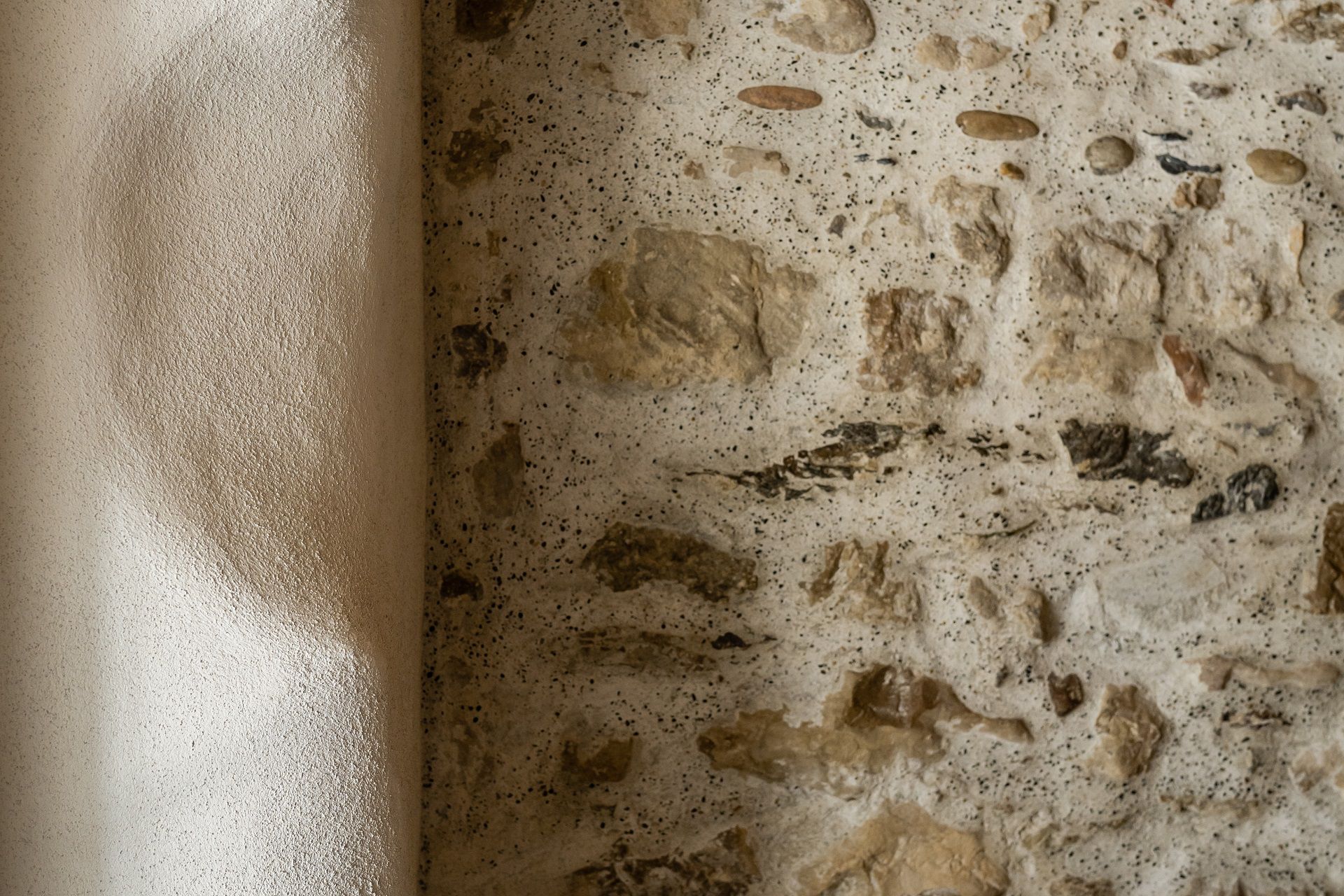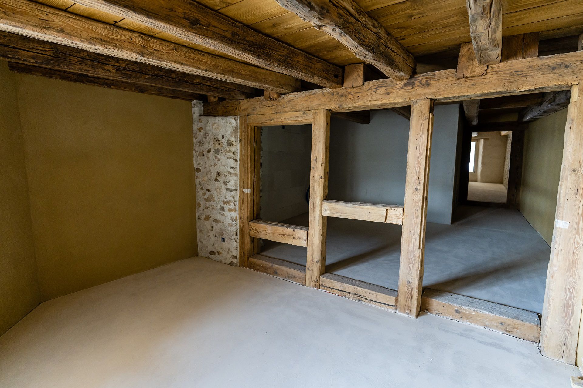 Bei der Verwendung der Materialien zum Innenausbau wurde bewusst auf Nachhaltigkeit und Ökologie geschaut. Bei den Wandputzen im 1. und 2. Obergeschoss wurden Lehmputze verwendet. Im Erdgeschoss fanden Kalkputze ihren Platz. Bruchsteinmauern sind nach alten Mörtelrezepturen ausgefugt worden. Die Aussenwände wurden im Innenbereich mit Isolationsmörtel und Bio-Einbettmörtel verputzt. Die mehrheitlichen Innenputze stammen von der Firma Haga Naturbaustoffe AG. Für die Anstriche werden ebenfalls nachthaltige Kalk- und mehrheitlich Lehmfarben verwendet.